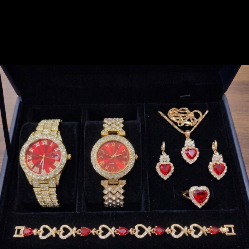 - এক্সক্লুসিভ জুয়েলারি সেট: হার্ট শেপ লাল পাথরের চমৎকার একটি নেকলেস, এক জোড়া ম্যাচিং কানের দুল এবং একটি প্রিমিয়াম আংটি।