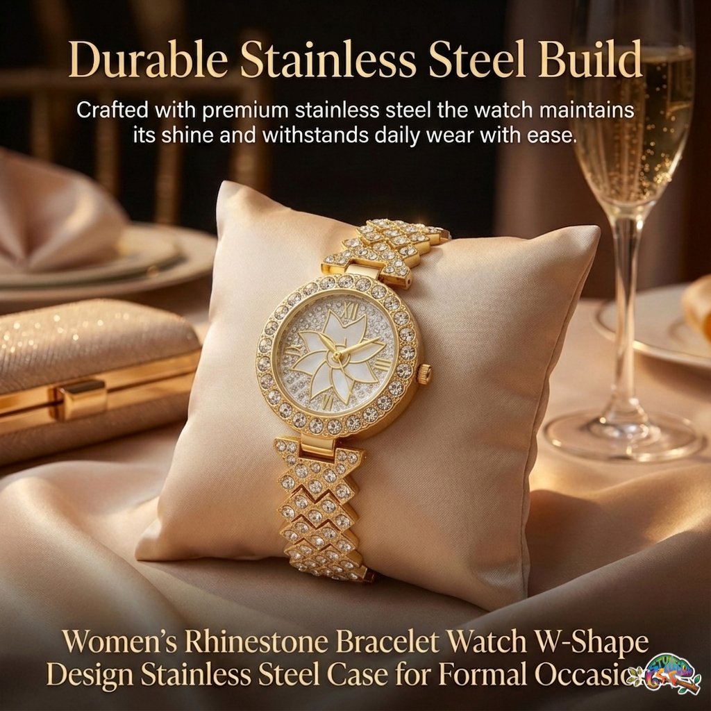✨ ডায়মন্ড স্টাইল স্টোন: ঘড়ির চারপাশে বসানো ঝকঝকে স্টোনগুলো আলোতে অসাধারণ শাইন দেয়।