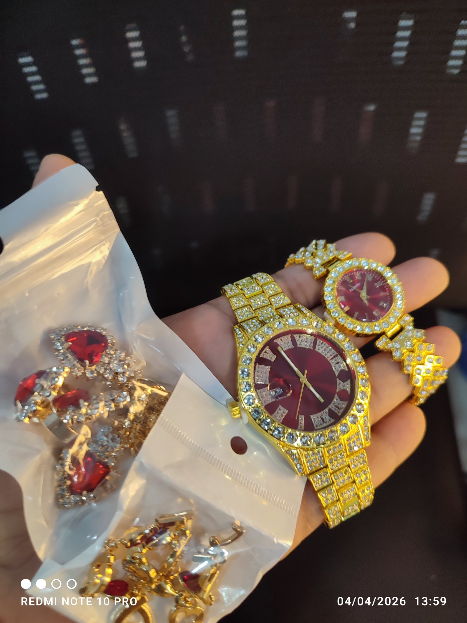 - ছেলেদের জন্য: একটি প্রিমিয়াম গোল্ডেন ডায়মন্ড স্টাইল ঘড়ি (উইথ ডে-ডেট ডিসপ্লে)।